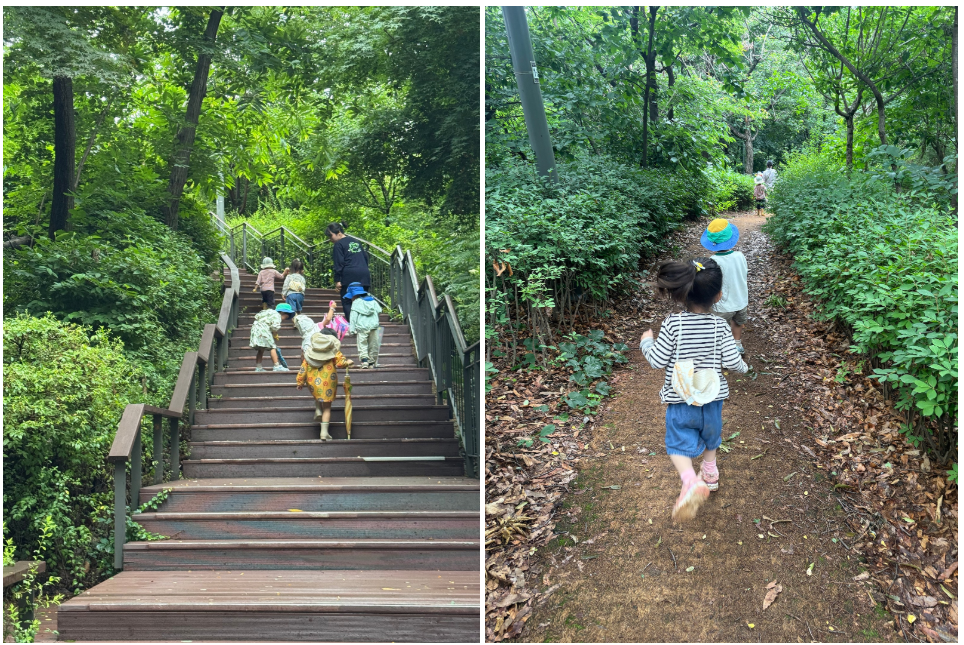 아이들이 산과 공원에서 자연을 느끼고, 마을 이웃을 만나며 사회성을 키우는 모습도 확인할 수 있습니다.