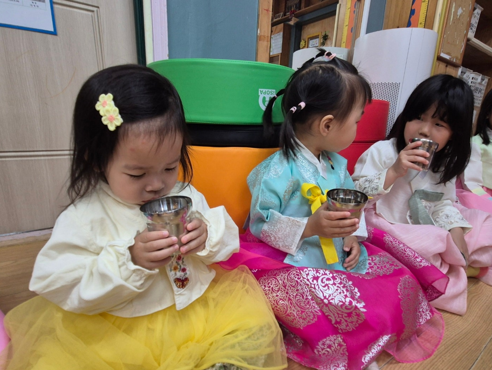 조상들의 건강 기원 풍습을 배워요. 처음엔 낯설어하지만 친구들과 함께하면서 웃음꽃이 피어난답니다.