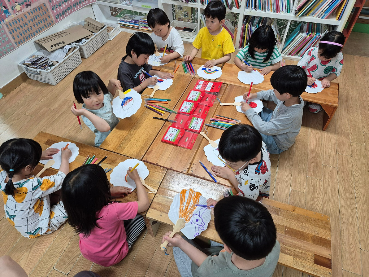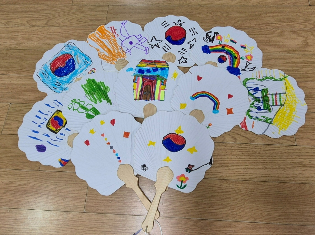 단오를 맞아 아이들이 직접 만든 **예쁜 단오선(부채)**은