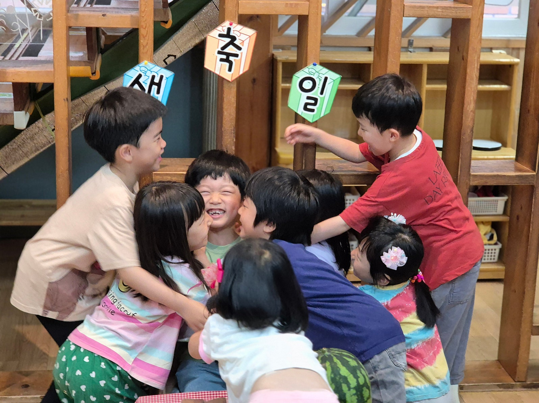 오늘은 성미산 어린이집의 네 개 반, 도톨방, 잎새방, 열매방, 나무방 아기들의 생일 파티 현장을 소개해 드릴게요.