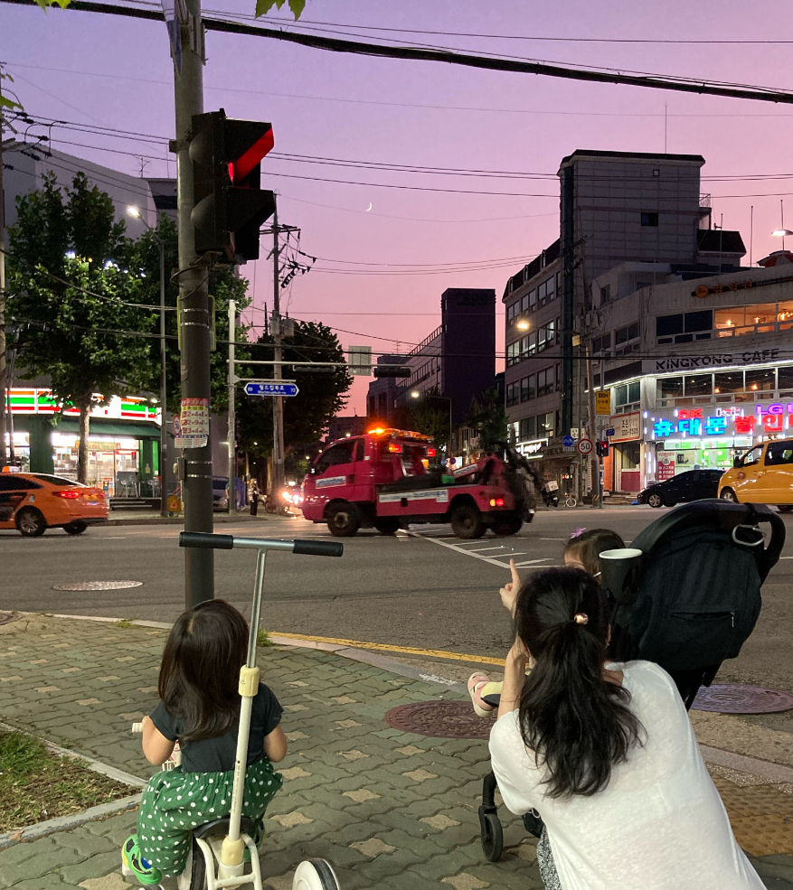 북적이는 놀이터 대신 고요한 밤길을 걸으며 아이의 눈높이에서 하늘을 바라보세요.