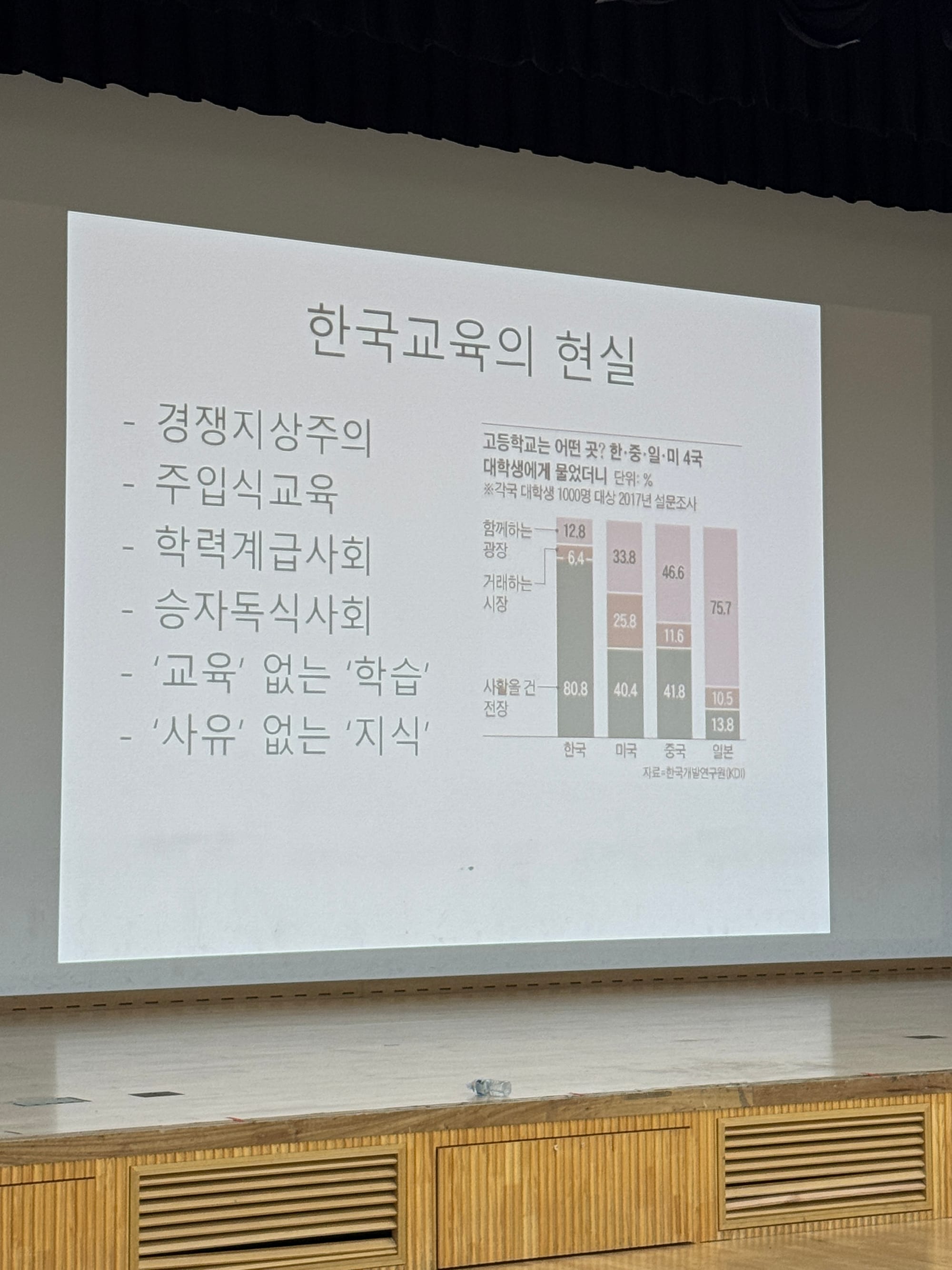 이 세 가지 구조 안에서, 우리 아이들은 교육 없는 학습, 사유 없는 지식, 행복 없는 성공을 강요받고 있습니다.