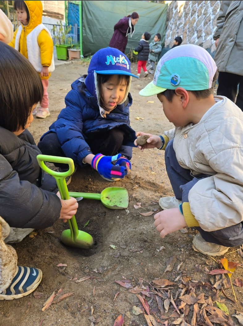 - 오감 발달: 흙을 만지고, 나뭇잎을 관찰하며 오감이 자극됩니다.