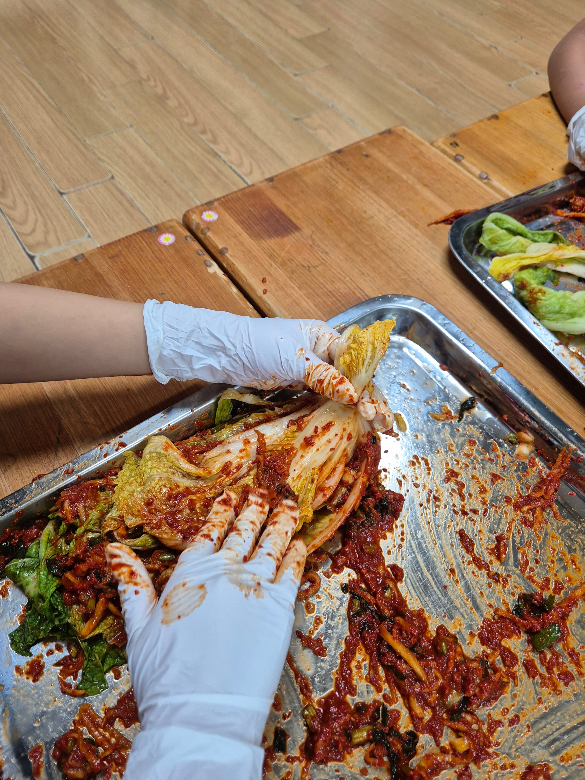 작은 손에 고무장갑을 끼고 배추에 양념을 칠하듯 ‘쓱쓱’ 버무리는 모습에 절로 미소가 나왔답니다.