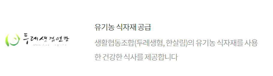 - 유기농 식재료: 두레생협, 한살림 공급