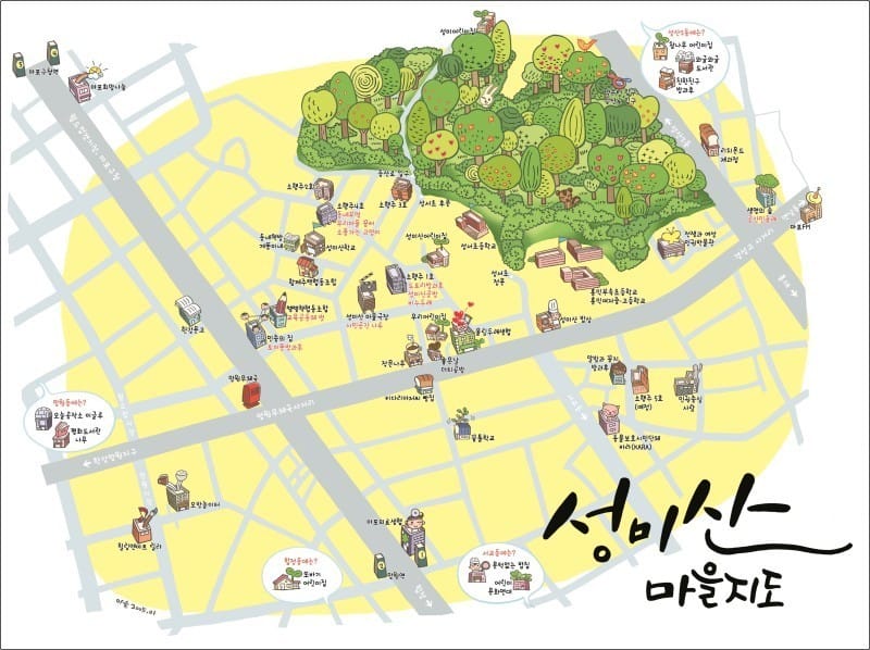 해발 66미터의 작고 낮은, 그러나 마포구 유일의 자연산인 성미산을 중심으로 연결된 크고 작은 70여개의 커뮤니티 네트워크를 일컬어 ‘성미산마을’이라고 합니다.