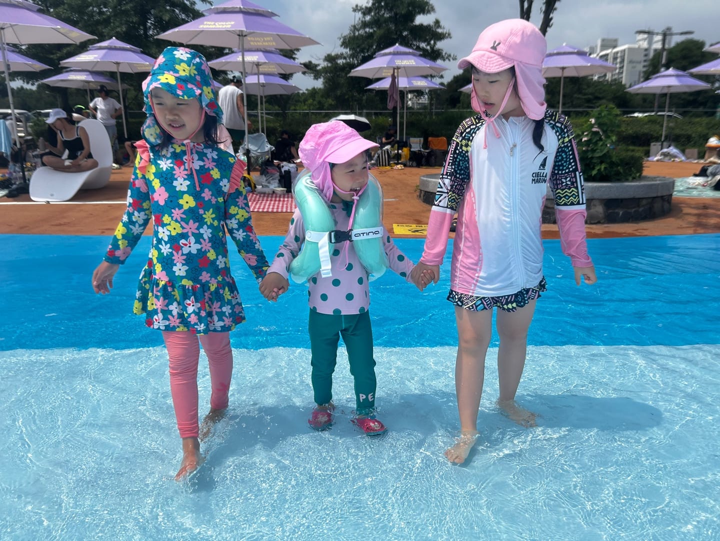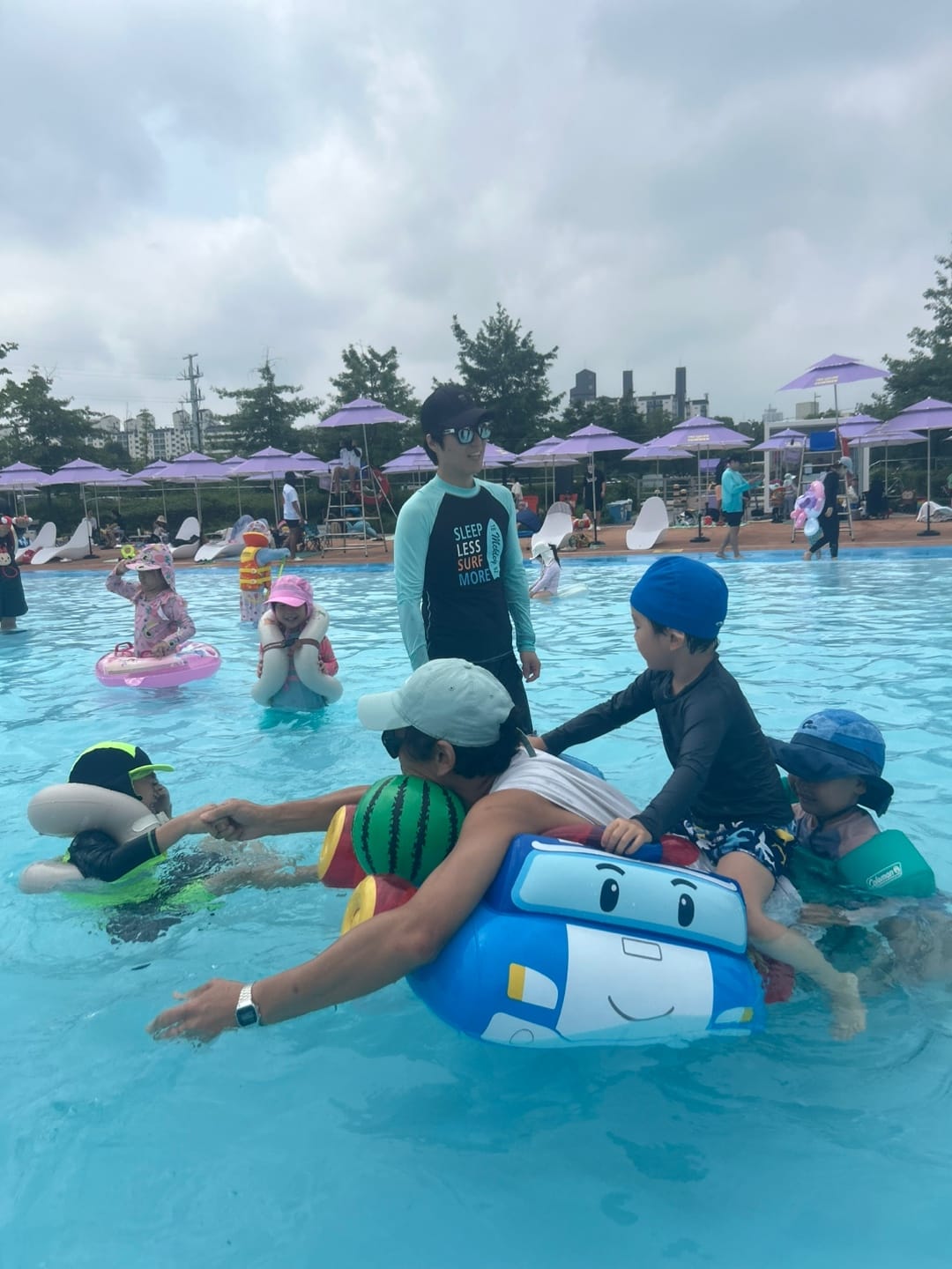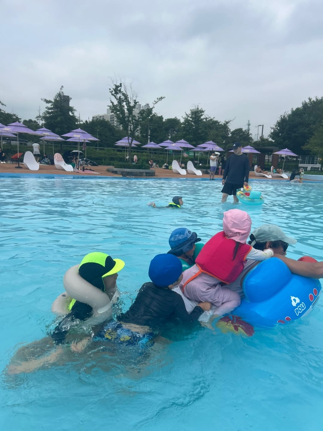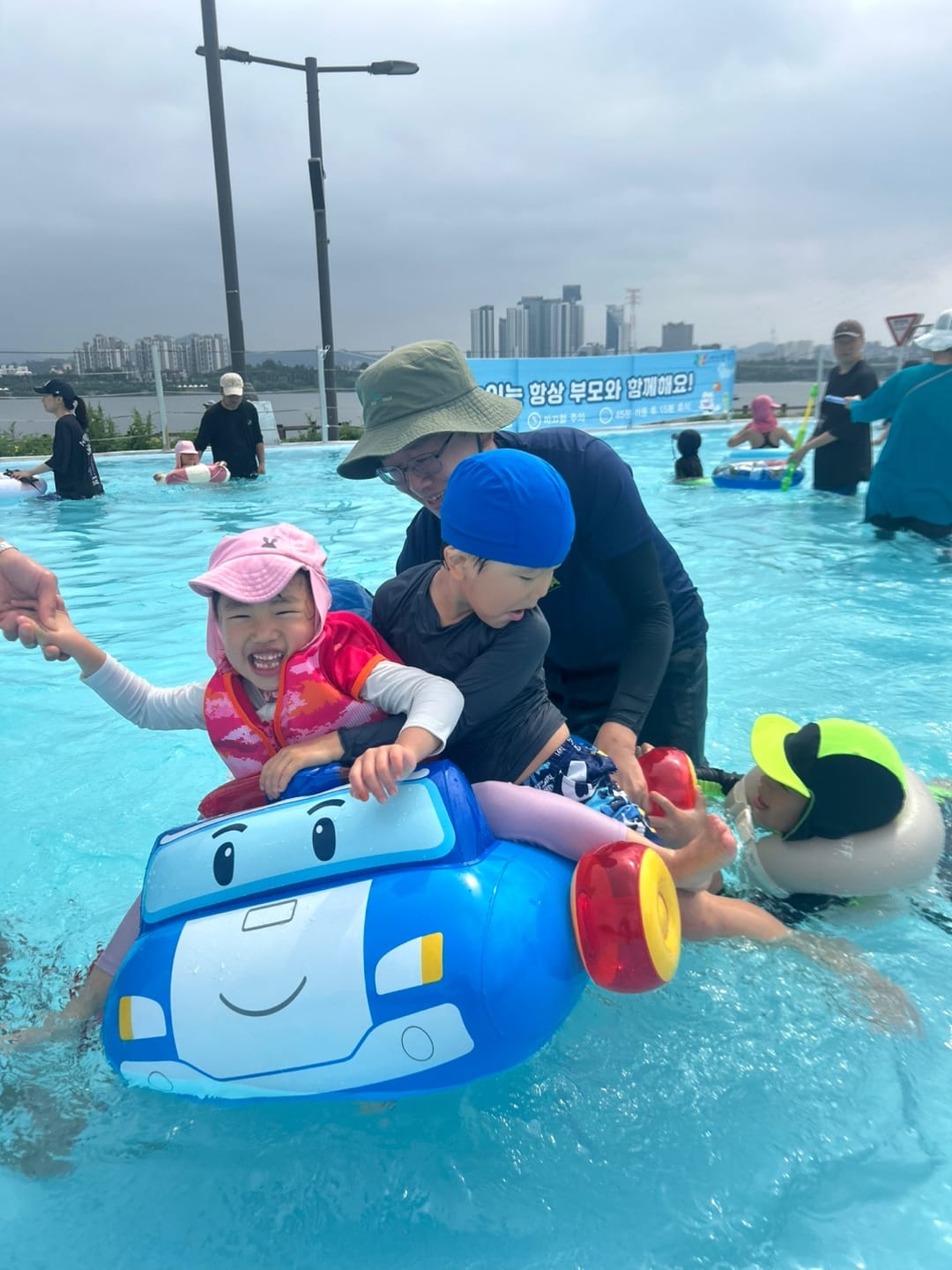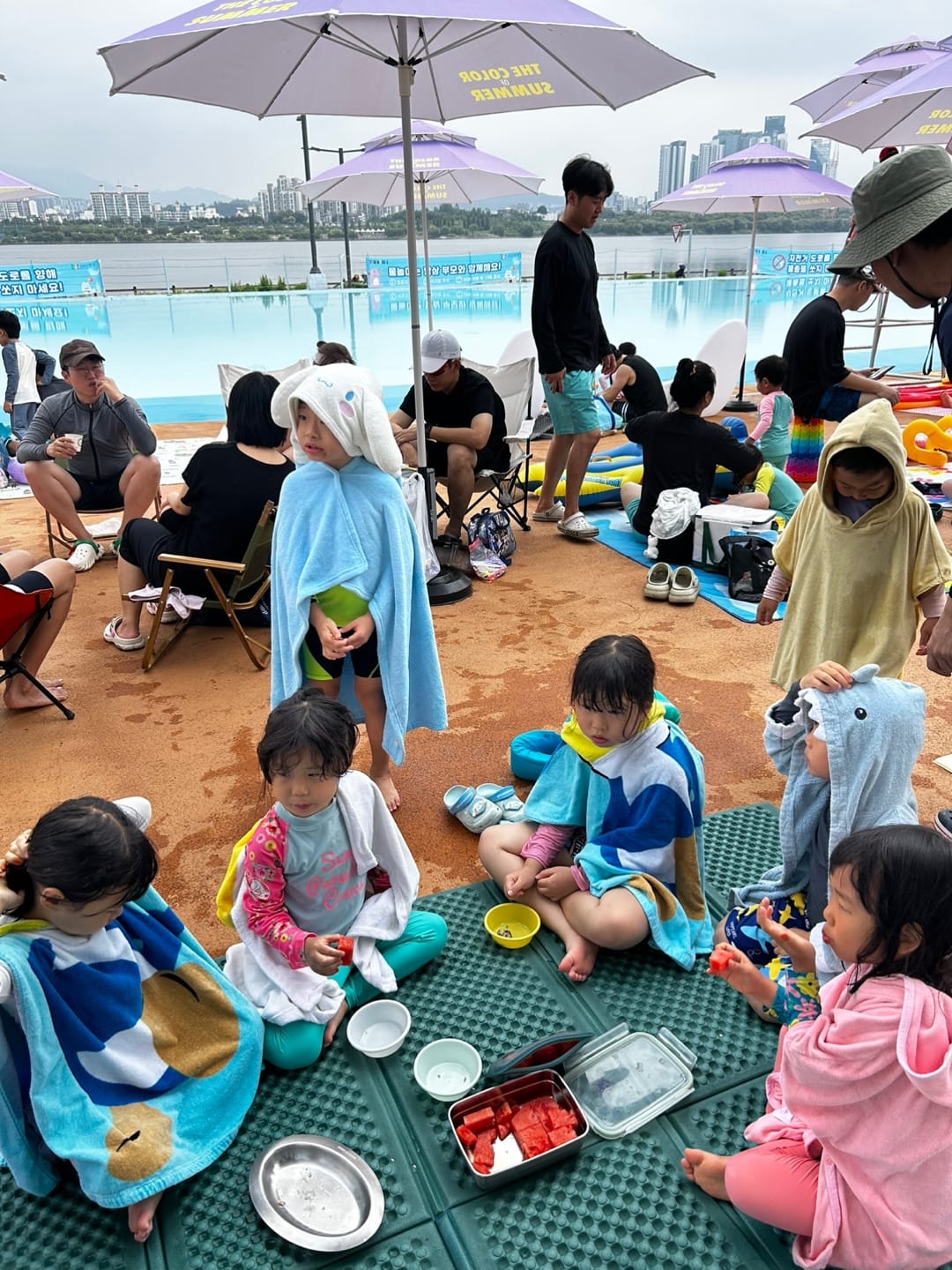지난 주말, 다섯 가정이 함께 양화 한강공원 물놀이장에서 시원한 하루를 보내고 왔어요.