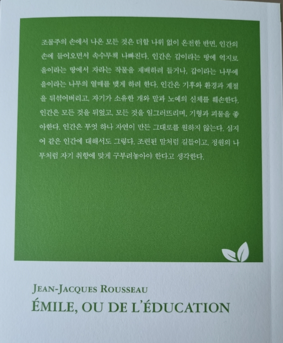 “자연은 모든 것을 완벽하게 만든다. 다만 인간이 그것을 망친다.” — 루소, 『에밀』
