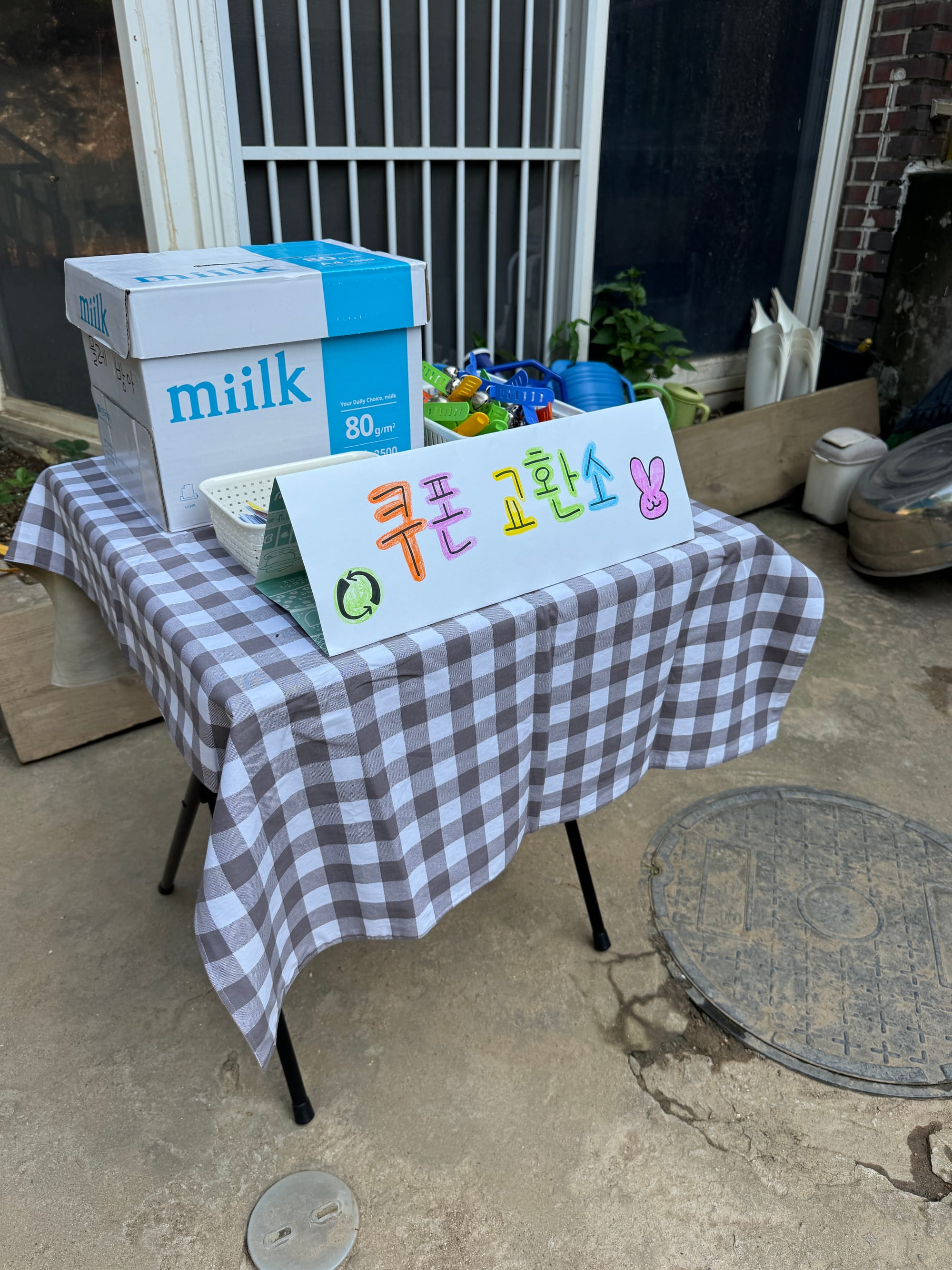 마치 마법처럼 평범했던 어린이집 마당이 작은 장터로 변신했어요.