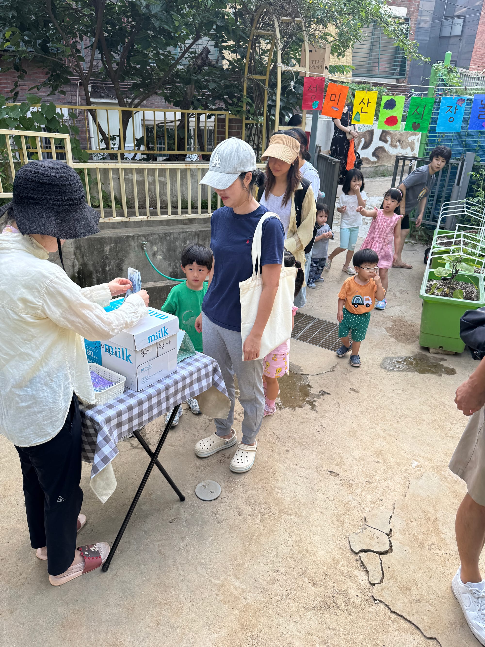 지난 7월 24일 목요일, 성미산 어린이집 마당에서 열린 시장놀이(알뜰장터)에 다녀왔습니다.