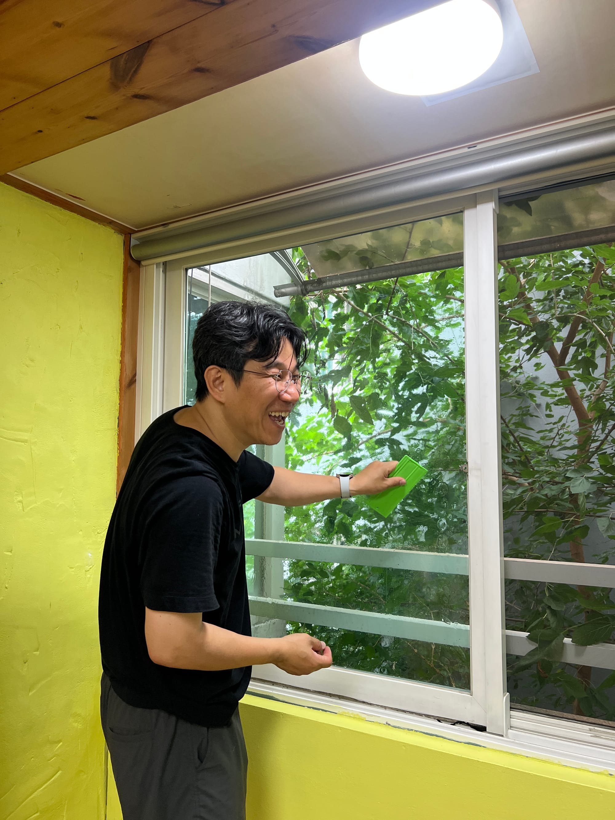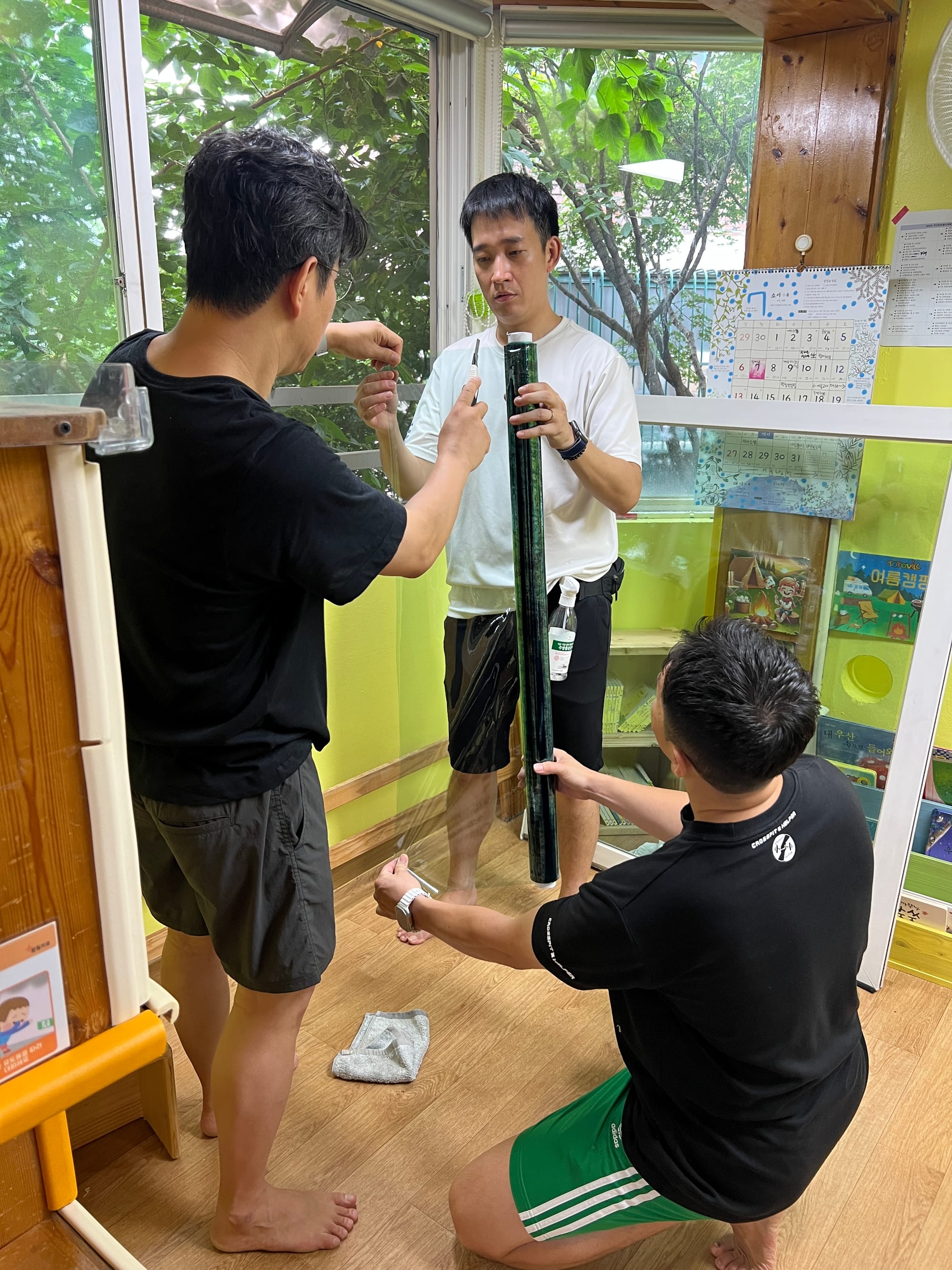 햇빛이 강하게 들어오는 창문에는 아빠들이 직접 나서서 썬팅 필름 시공까지 완료!